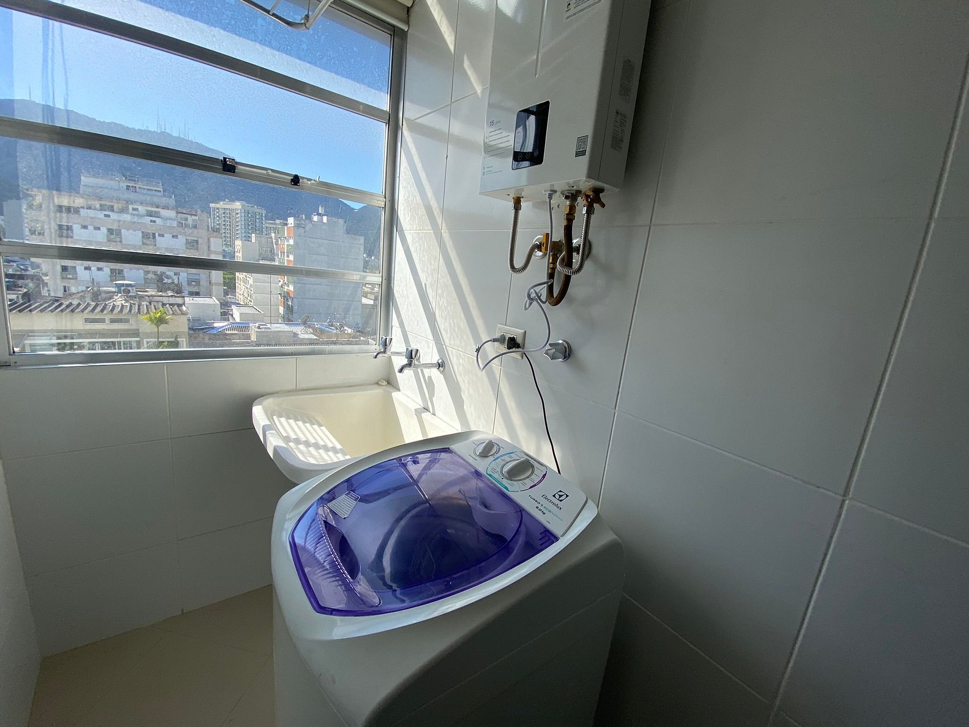 The shower water is heated with natural gas, which will provide you with a hot shower with plenty of water. The equipment is new and electronic, that is, it regulates itself according to the volume of water. Just open the whole hot water valve (left side) and season with cold water (right side valve). We kindly ask you not to touch the device.