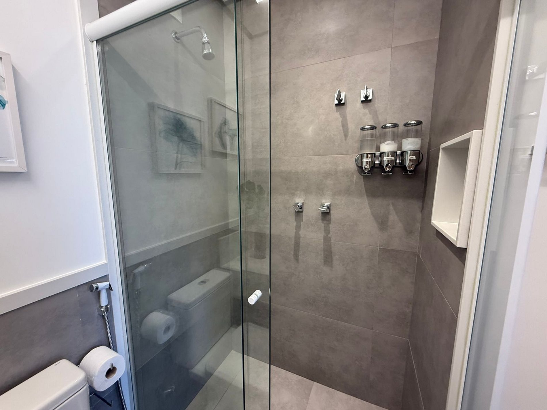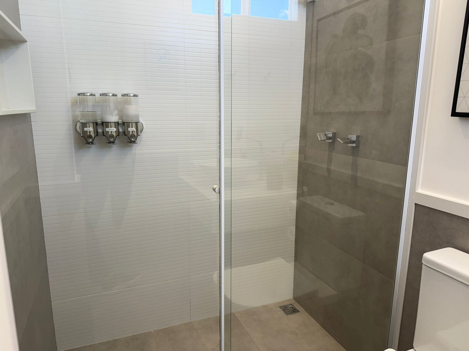 The shower water is heated with natural gas, which will provide you with a hot shower with plenty of water. The equipment is new and electronic, that is, it regulates itself according to the volume of water. Just open the whole hot water valve (left side) and season with cold water (right side valve). We kindly ask you not to touch the device.