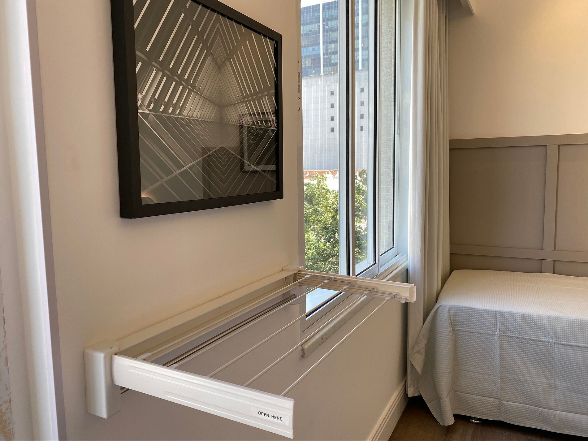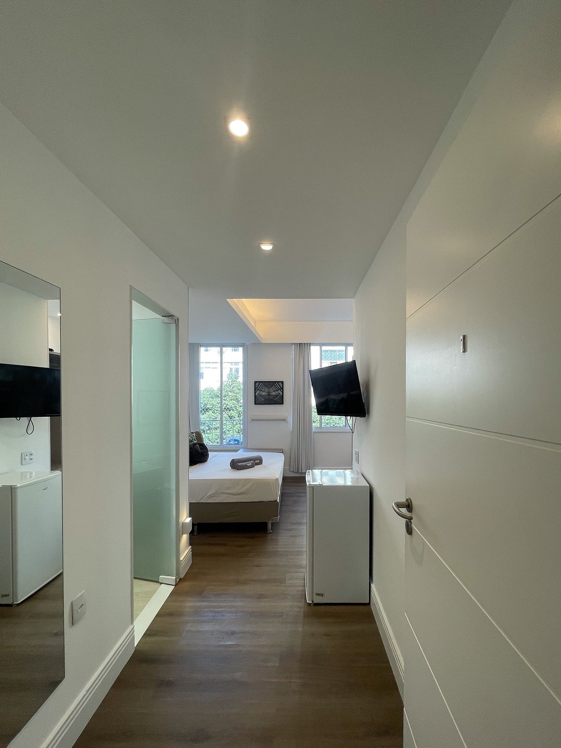 - Check-in: Identifique-se com o porteiro ao chegar. Dentro do cofre ao lado da porta estão os cartões de acesso. A senha será compartilhada 24 horas antes do seu check-in