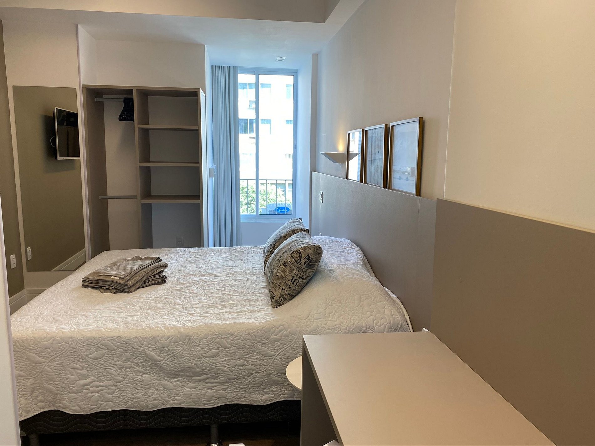 Localizado há duas quadras da praia ( Posto 9 ), próximo ao metrô, bares, restaurantes, cafés e lojas.