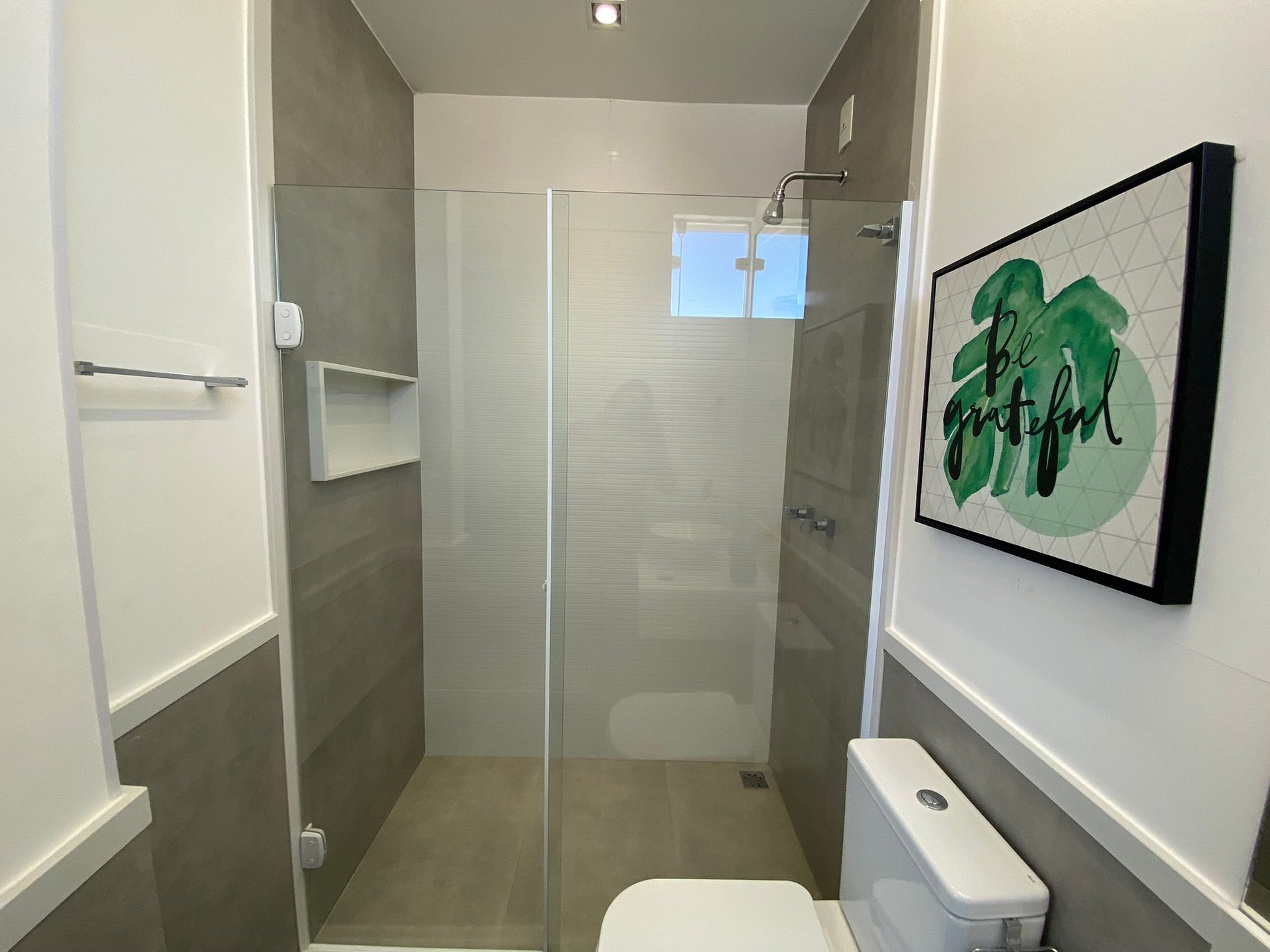 O aquecimento da água do chuveiro é com gás natural, o que lhe proporcionará um banho quente e com água abundante. O equipamento é novo e eletrônico, ou seja, ele se auto regula conforme o volume de água. Basta abrir todo registro de água quente (lado esquerdo) e temperar com a água fria (registro lado direito). Pedimos a gentileza que não mexam no aparelho.