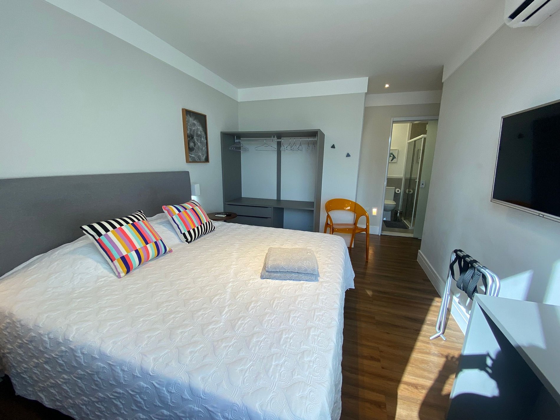 Temos ar condicionado e blackout nas duas suítes.