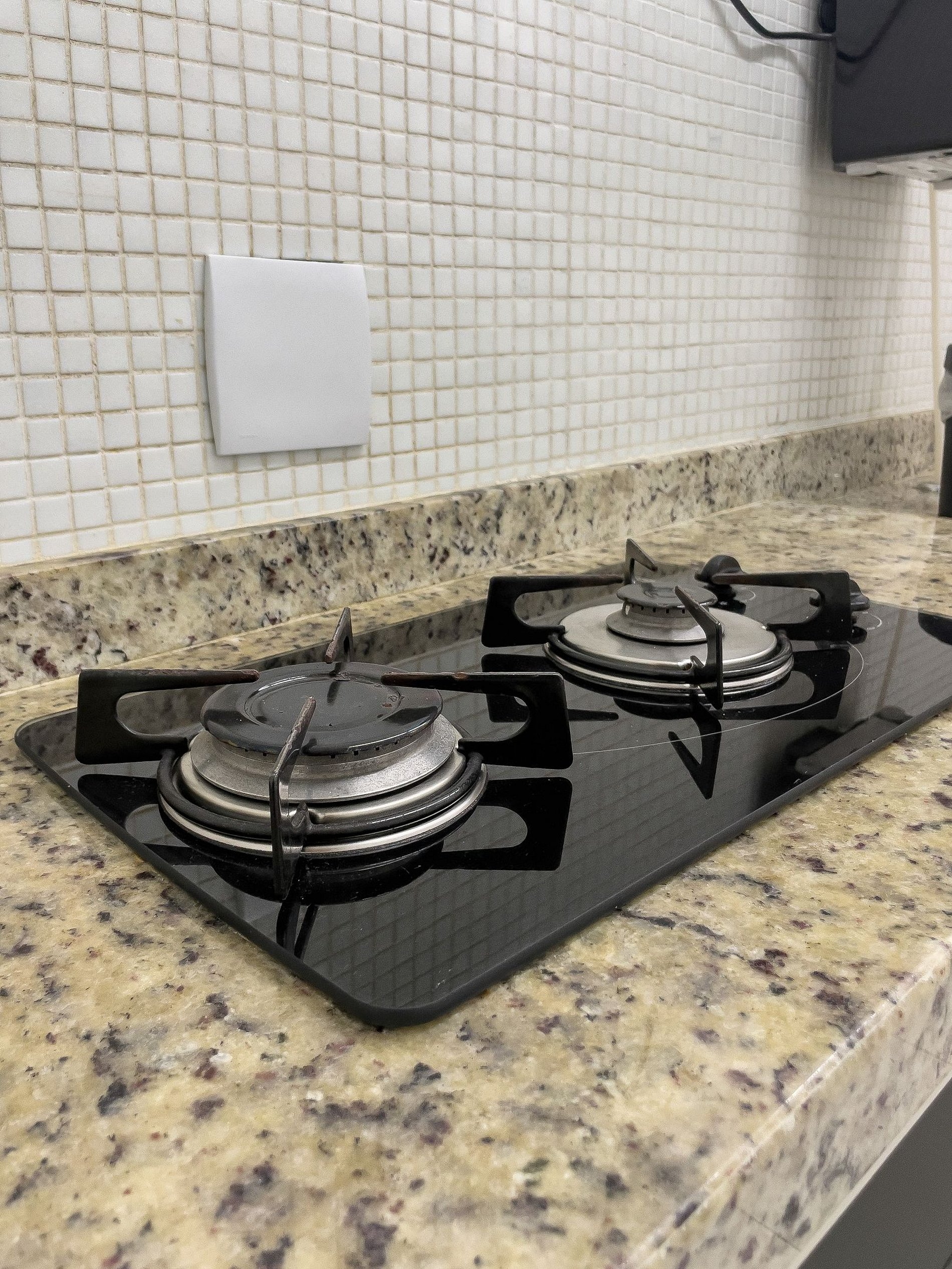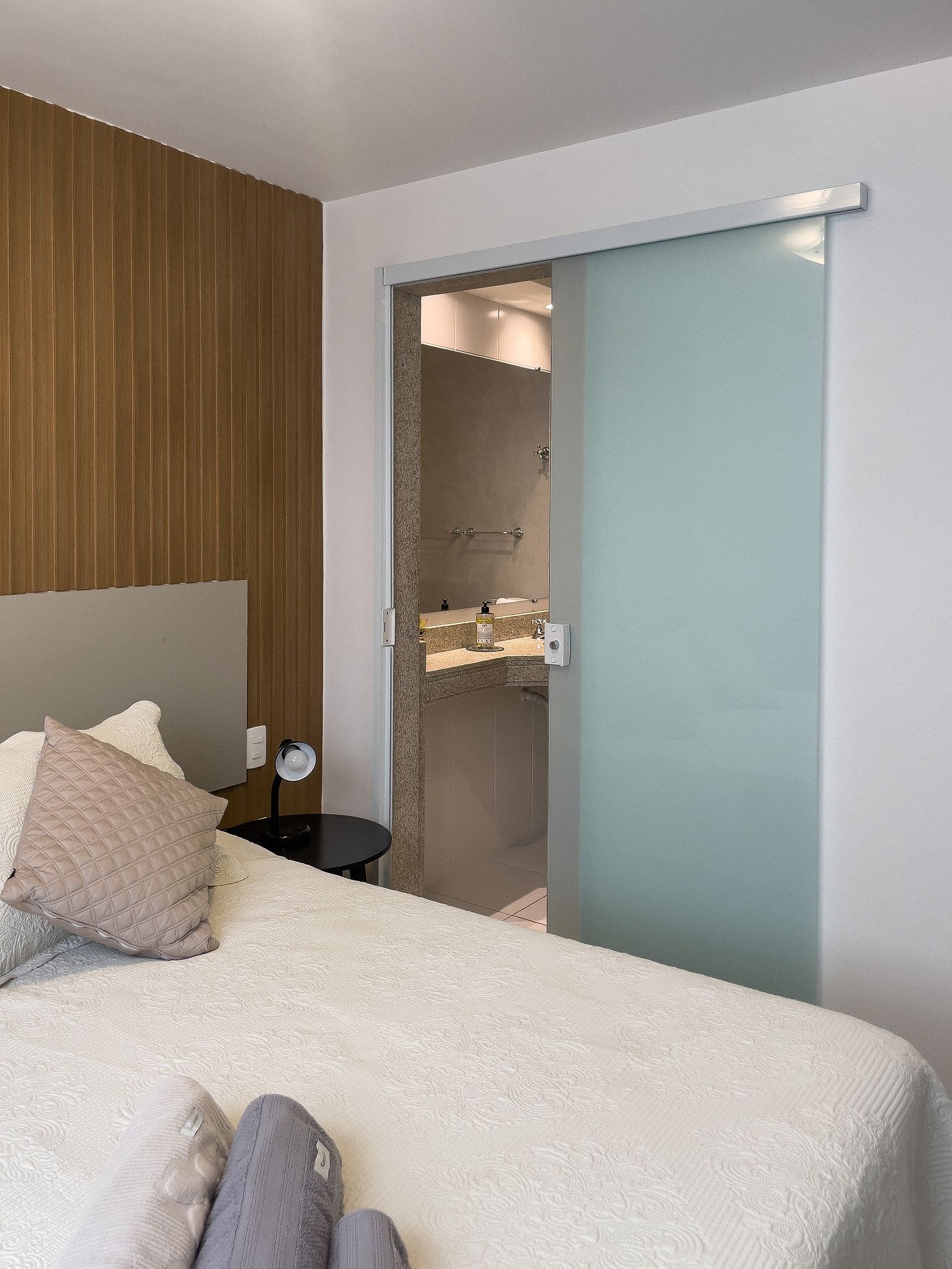 Temos ar condicionado e blackout na suíte, no quarto e na sala.