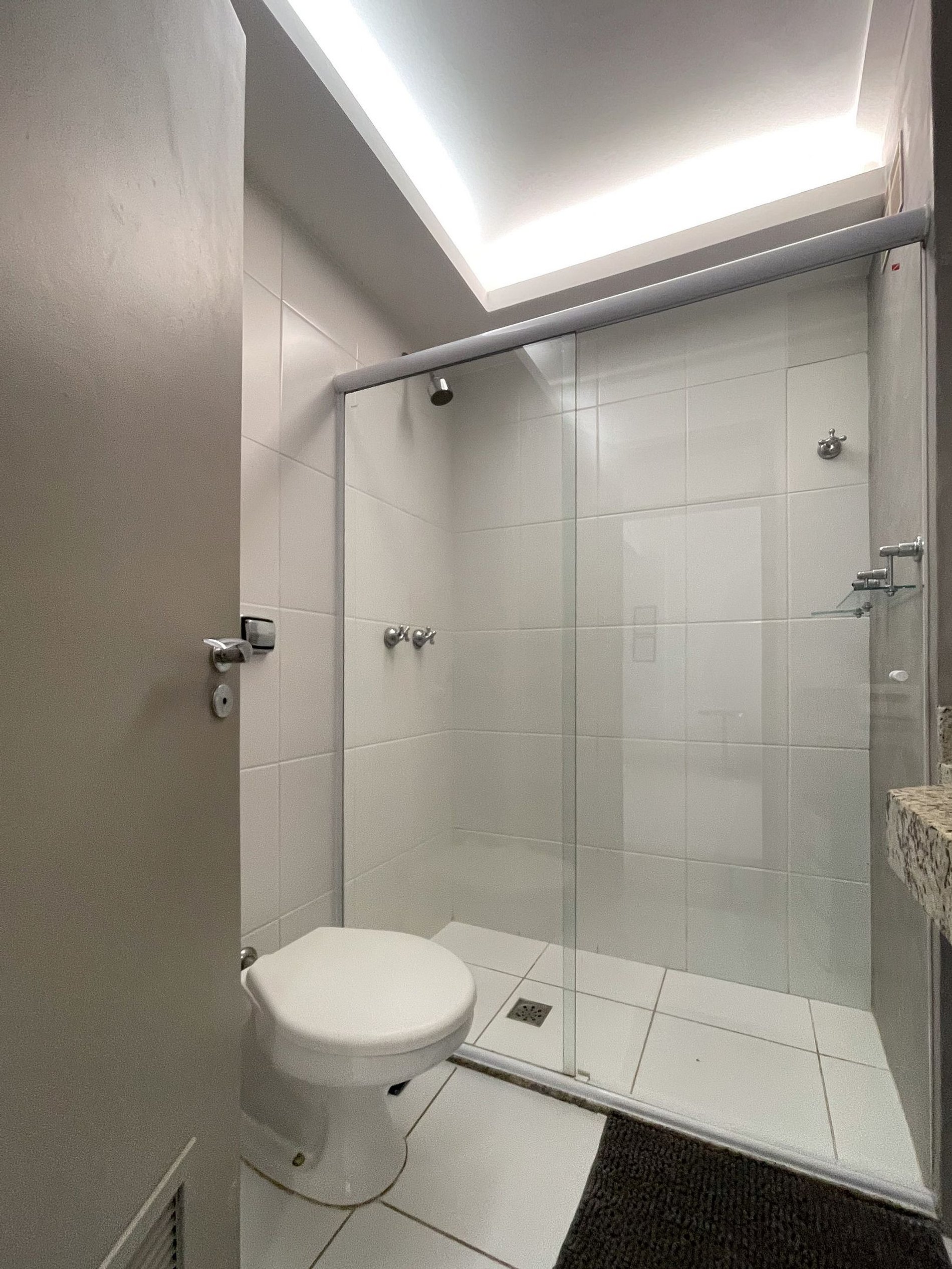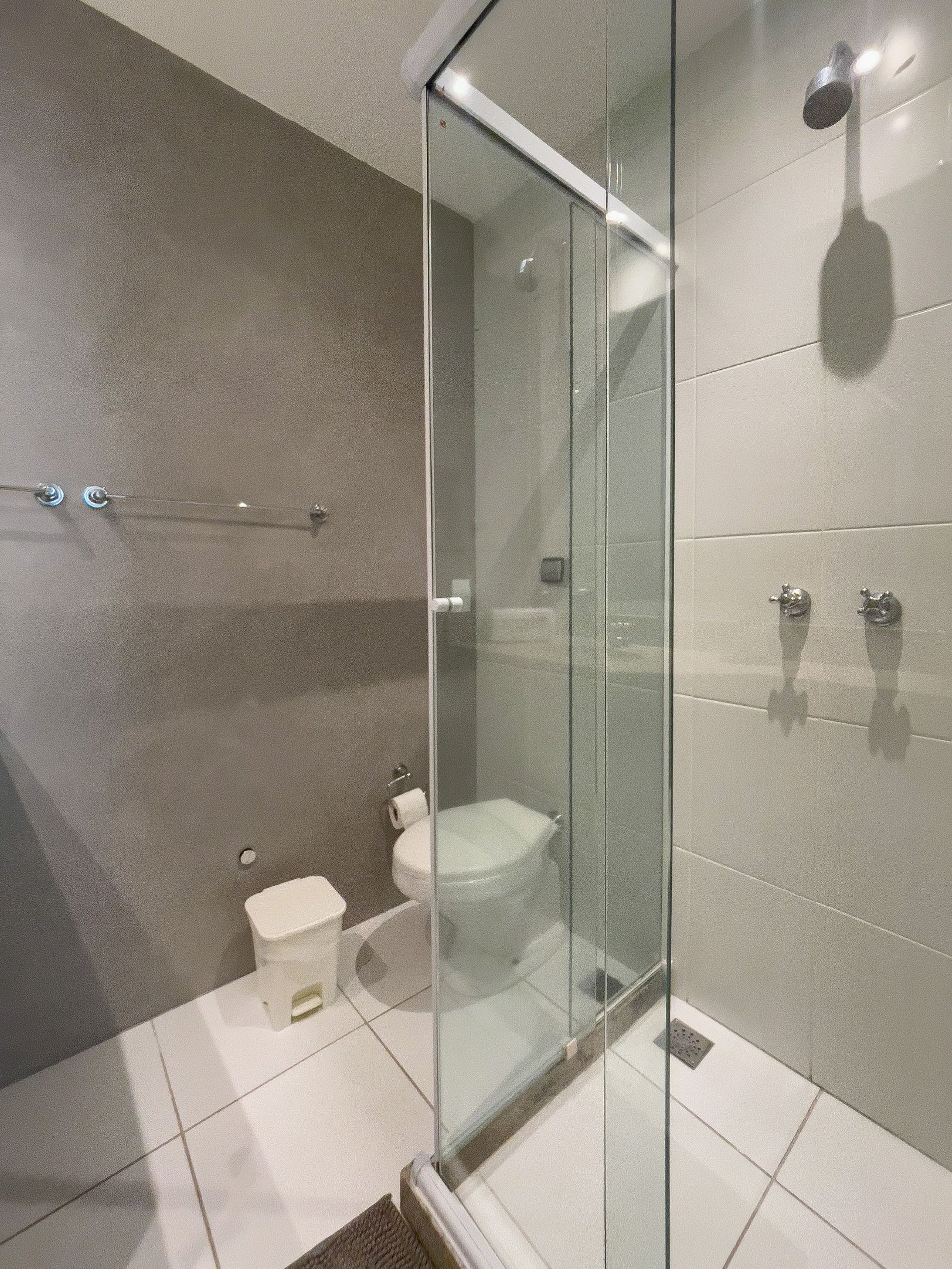 O aquecimento da água do chuveiro é com gás natural, o que lhe proporcionará um banho quente e com água abundante. O equipamento é novo e eletrônico, ou seja, ele se auto regula conforme o volume de água. Basta abrir todo registro de água quente (lado esquerdo) e temperar com a água fria (registro lado direito). Pedimos a gentileza que não mexam no aparelho.