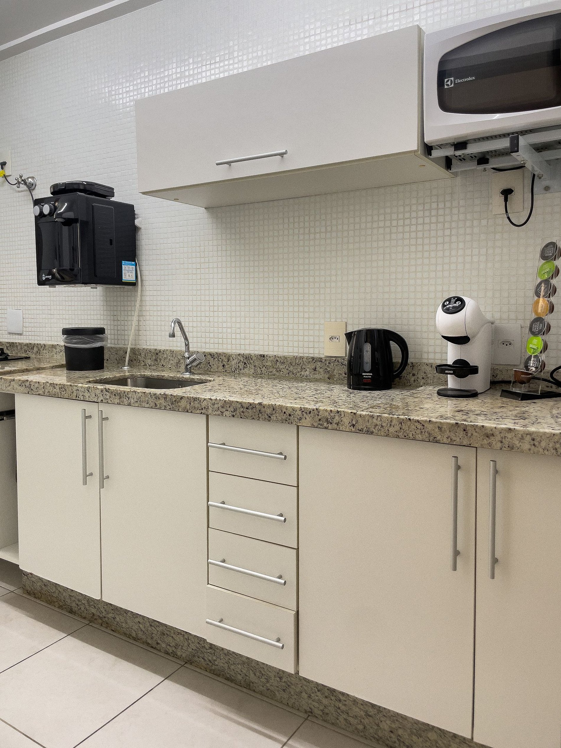 Temos uma máquina de café espresso, e as cápsulas são uma cortesia, esperamos que gostem.